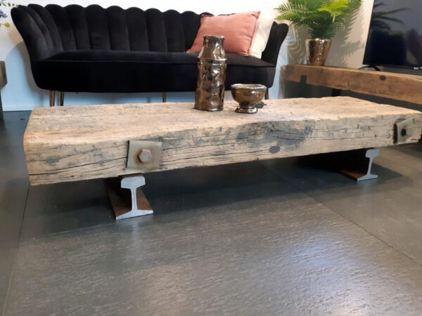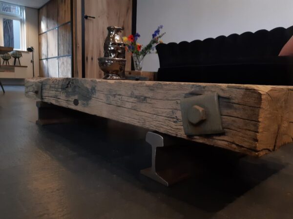 Um im Stil zu bleiben, haben wir als Untergestell alte Eisenbahnschienen verwendet.