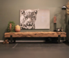 TV-Möbel aus alten Bahnschwellen rau mit Stahlgestell 40 cm breit